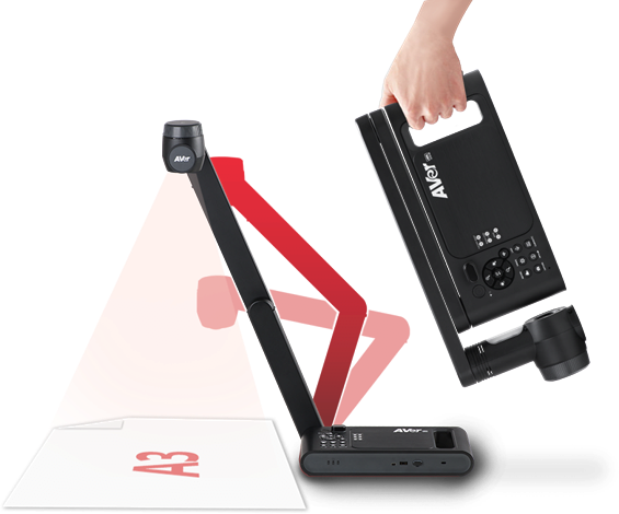 Der stabile, verstellbare mechanische Arm und der Tragegriff ermöglichen den Anwendern die flexible Nutzung der M70W in den unterschiedlichsten Bereichen. Und der Positionsanzeiger im Kamerakopf ermöglicht die präzise Darstellung von Dokumenten im A3-Format.