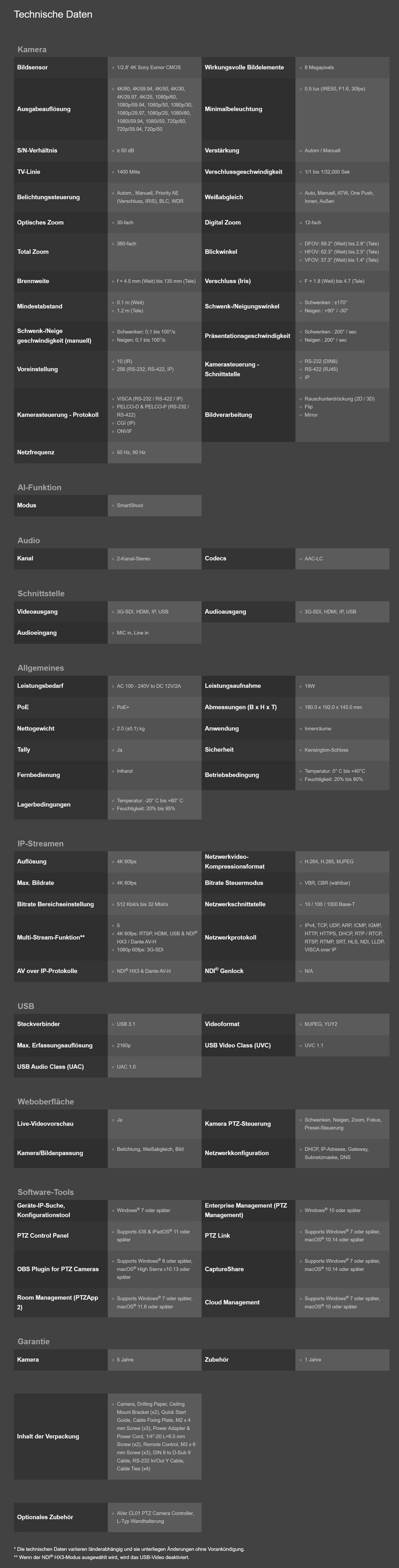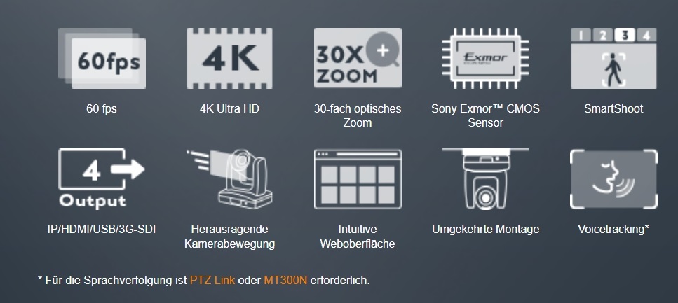 Dank ihrem branchenführenden Sony-Sensor sorgt die 4K Ultra HD-Auflösung der PTZ330UV2 für beeindruckende Klarheit jedes Streams. Dieser hervorragende Bildprozessor ist in der Lage das Video automatisch anzupassen - garantiert großartige Szenen, unabhängig von Situation oder Entfernung.
