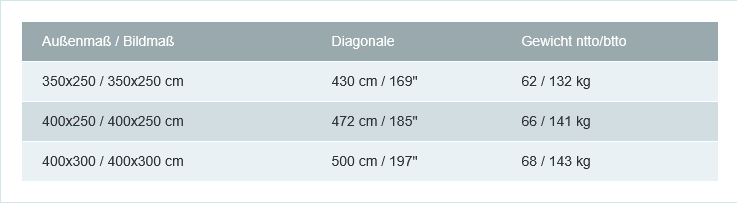 - großformatige Elektro-Leinwände, besonders geeignet für den anspruchsvollen Einsatz im Messe- und Kongreßbereich