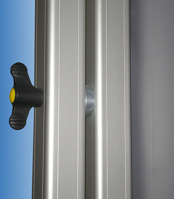 - Bildwandfläche wird mit Druckknöpfen auf den Rahmen gespannt
