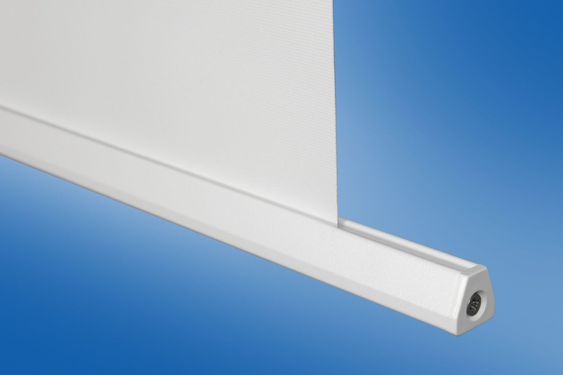- trapezförmiges Beschwerungsstab schließt bei kompletten Aufwicklung der Fläche den ganzen Gehäuseschlitz ab