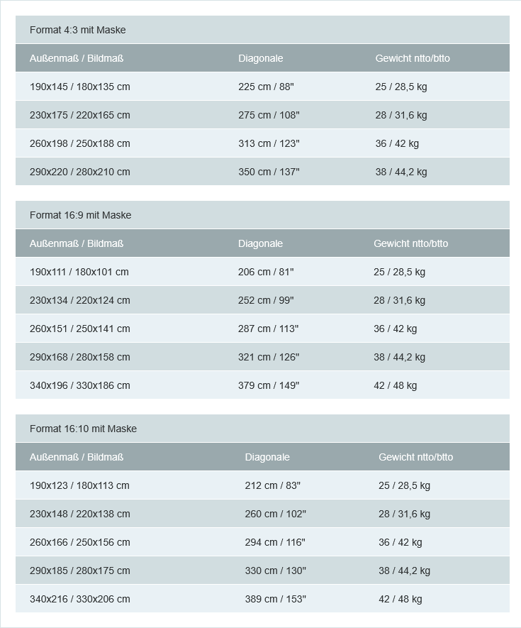 - seitlicher Spannsystem TabTension sichert perfekte Planlage der Projketionsfläche