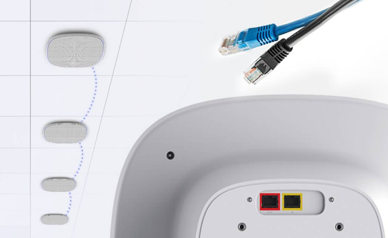 FONE700 benötigt lediglich ein einziges RJ45-Kabel für Strom und Internet. Unterstützt werden bis zu vier Speakerphones mit einer maximalen Reichweite von 40 Metern, was optimale Anpassbarkeit für Konferenzräume unterschiedlichster Größe gewährleistet.