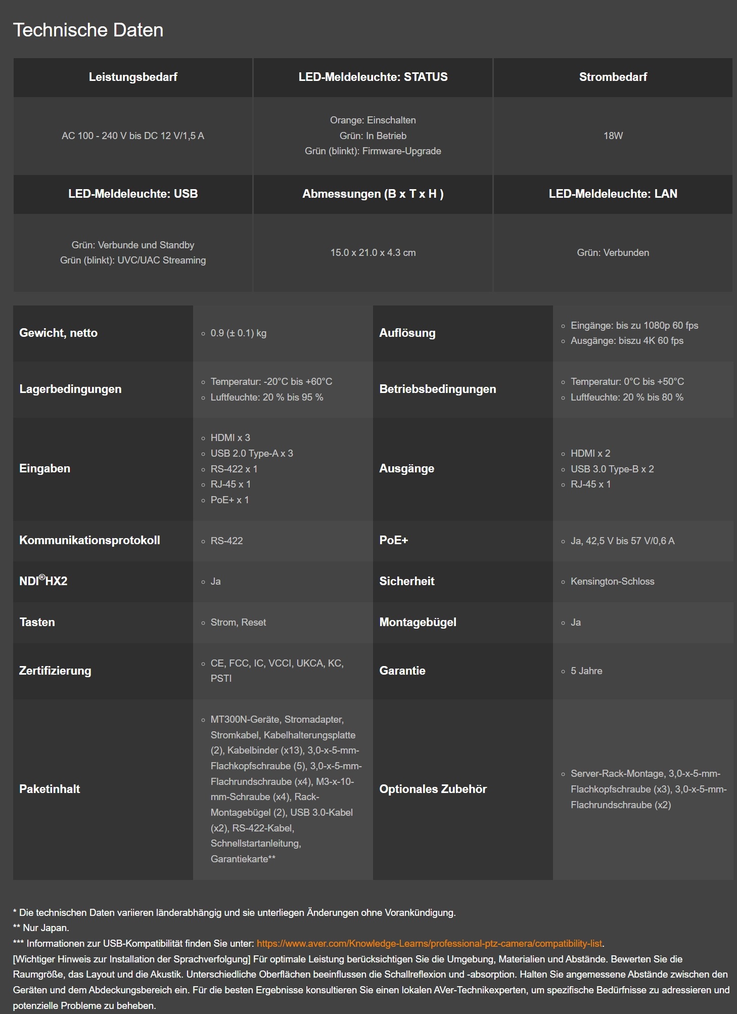 Mit der MT300N Matrix Tracking Box bringen Sie das audiovisuelle Erlebnis auf ein neues Level. Mit dem hochmodernen Multimediagerät von AVer werden Management und Steuerung mehrerer Quellen auf einer vereinheitlichen Plattform zum Kinderspiel. Von Meetings und Schulungssitzungen bis hin zu Klassenzimmern – die MT300N passt sich jeder Größenanforderung perfekt an. Mit der MT300N gelingt das Mix-and-Match von Audio, Video und Computergeräten für ein ultimatives Multimedia-Erlebnis im Handumdrehen. Die Zukunft des A/V-Managements ist schon hier.