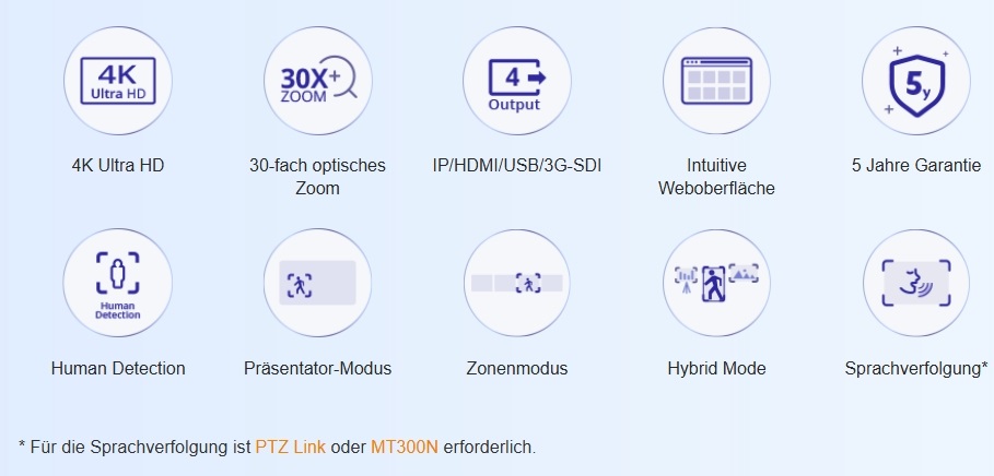 AVers neue TR335 KI Auto Tracking PTZ-Kamera erweitert die leistungsstarken und zuverlässigen Pro AV-Fähigkeiten für Anwender in der gesamten Industrie. Die TR335 beeindruckt mit proprietären Funktionen — einschließlich Tracking im Presenter-Modus, Zonenmodus und Hybridmodus — gestützt auf fortschrittliche KI-Verarbeitung. Die nahtlose Zusammenführung von 30-fach optischer Zoomlinse, 4K 60 fps Auflösung, Feinheit von Hybrid-Auto-Tracking und reibungslosen PTZ-Abläufen ist schon heute die erste Wahl für Senden, Streamen und Aufzeichnen.