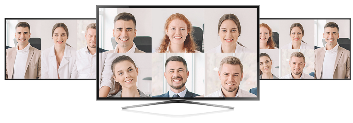 - SmartFrame für automatische Anpassung des Betrachtungswinkels, damit alle Teilnehmer erfasst werden.