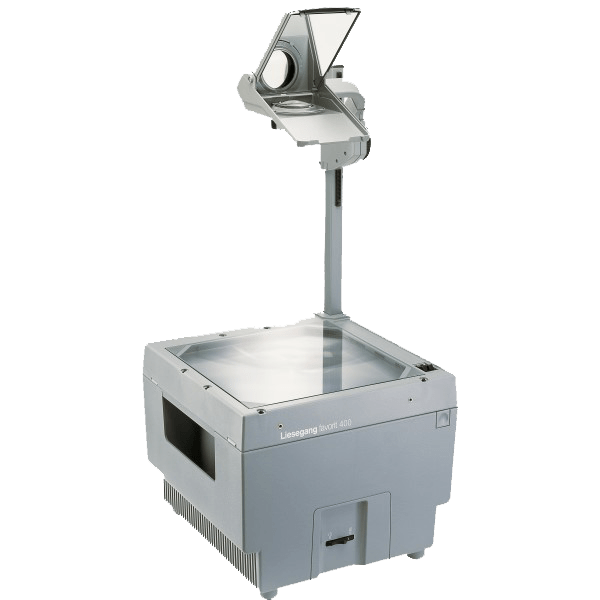 400 W, 4.300 AL, 11,0 kg, 3-Linser f= 315mm Hochleistungsobjektiv (Mehrlinser), Projektion von A4-Transparenten im Hoch- und Querformat, Lampen-Schnellwechsler, Lampen-Sparschaltung, Leiser Tangentiallüfter.