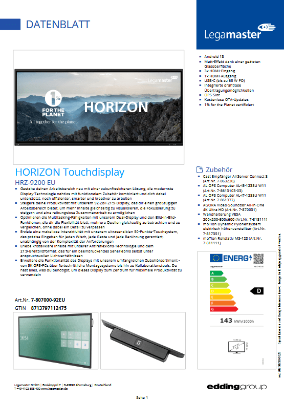 Erweitern Sie Ihre Möglichkeiten mit einem Ökosystem aus fortschrittlichem Zubehör, darunter leistungsstarke 5K OPS-PCs für anspruchsvolle Aufgaben, flexible Montagesysteme und innovative Kollaborationstools. Das 92-Zoll-Touchdisplay von Legamaster ist mehr als ein Screen – es ist Ihr zentraler Hub für Produktivität.