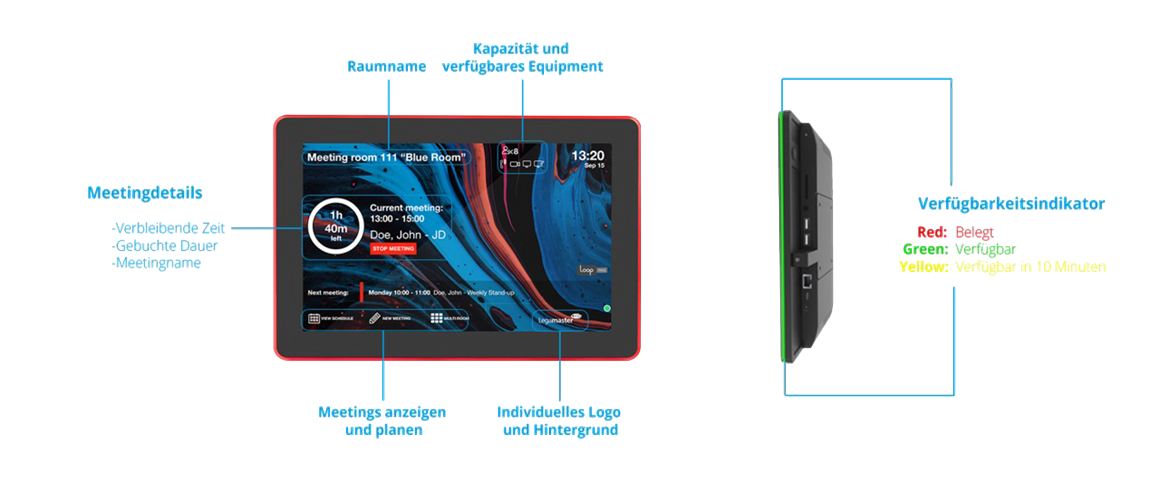 Mit dem LoopMeeting Room Panel ist es einfacher denn je, Besprechungsräume zu verwalten und zu nutzen.
